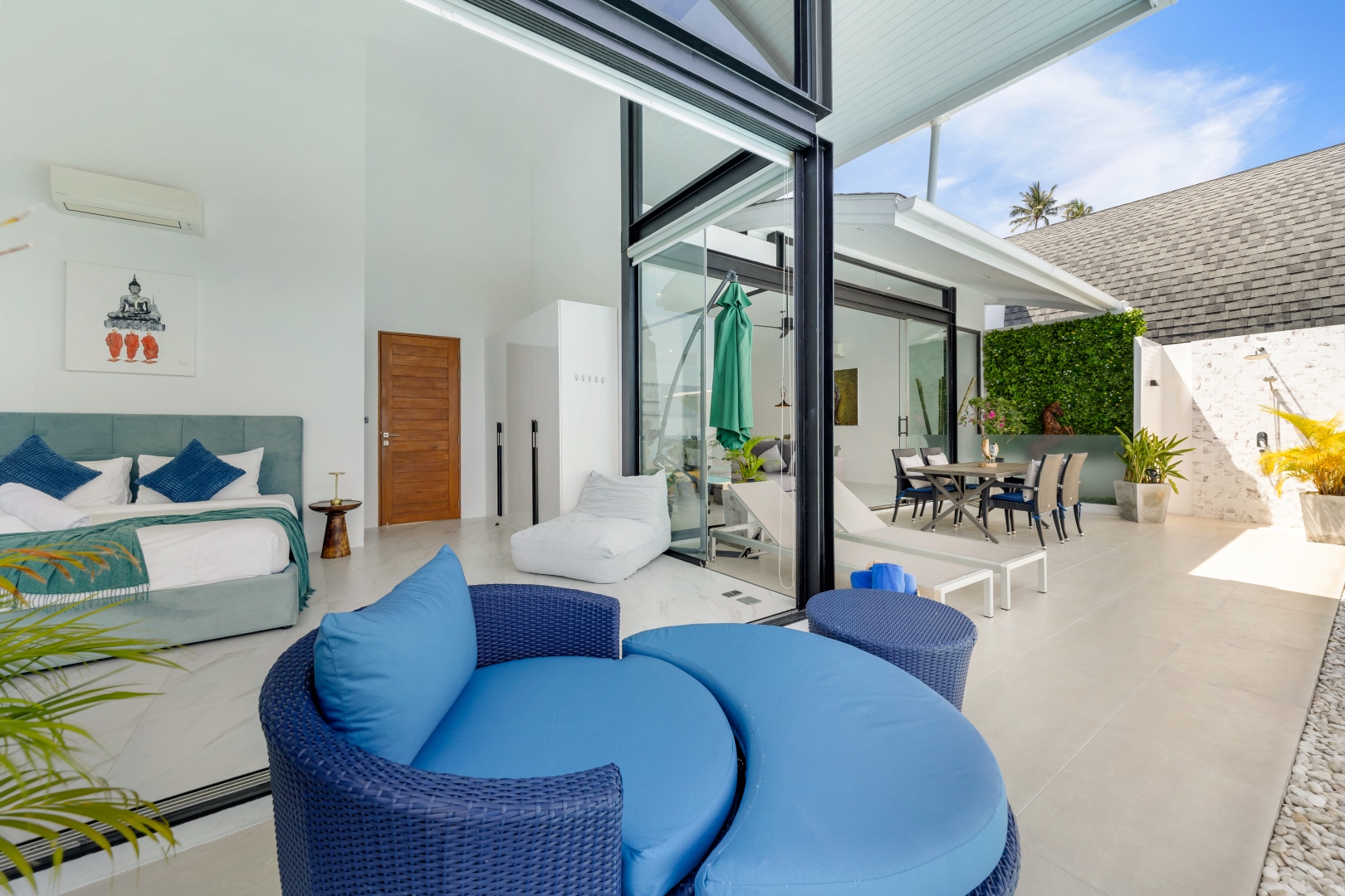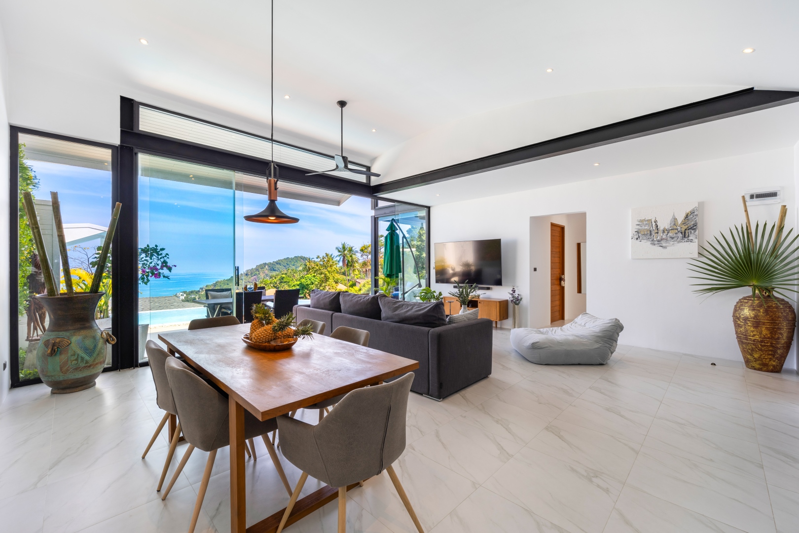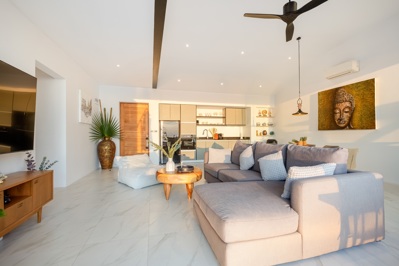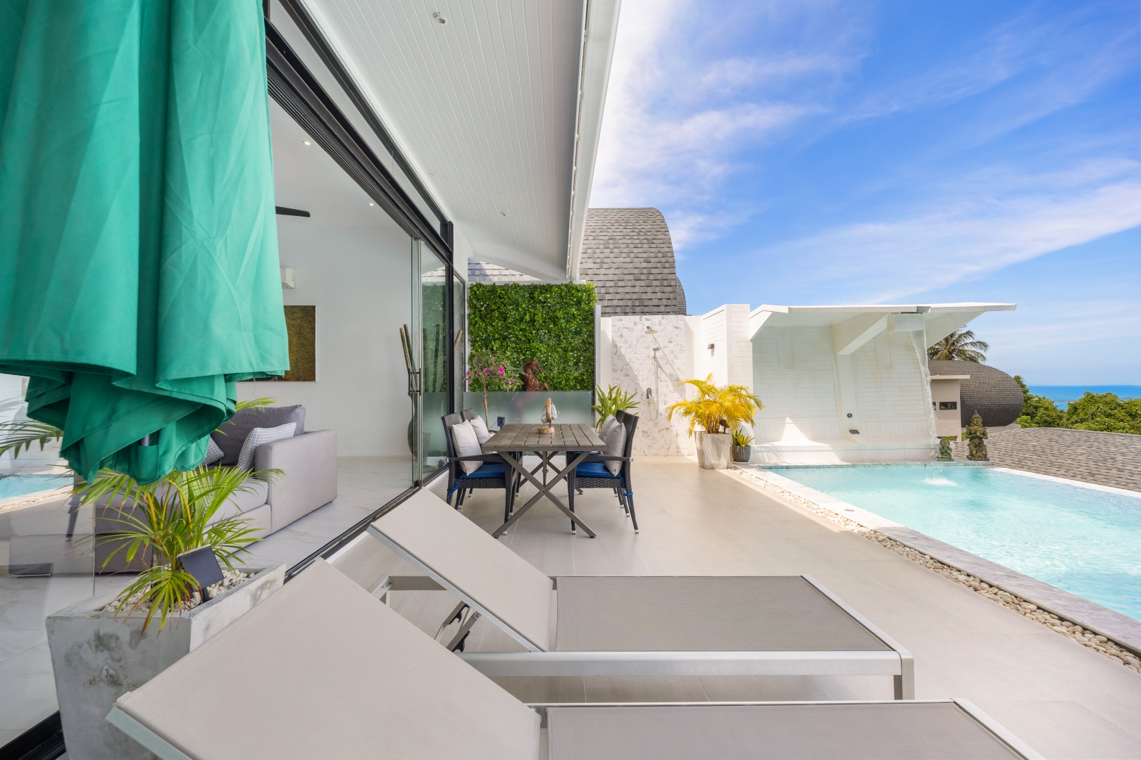 Die Villa Chaweng Sunrise besticht durch einen spektakulären Blick auf das Meer mit den schönsten Sonnenaufgängen am Morgen. Ausgestattet mit großzügigen Räumen, vollständiger Küche, einem großen Sofa, Smart TV, Klimaanlage und Designermöbeln will man am liebsten sofort einziehen. Morgens aufwachen und noch im Bett aufs Meer schauen – das ist Chaweng Sunrise.