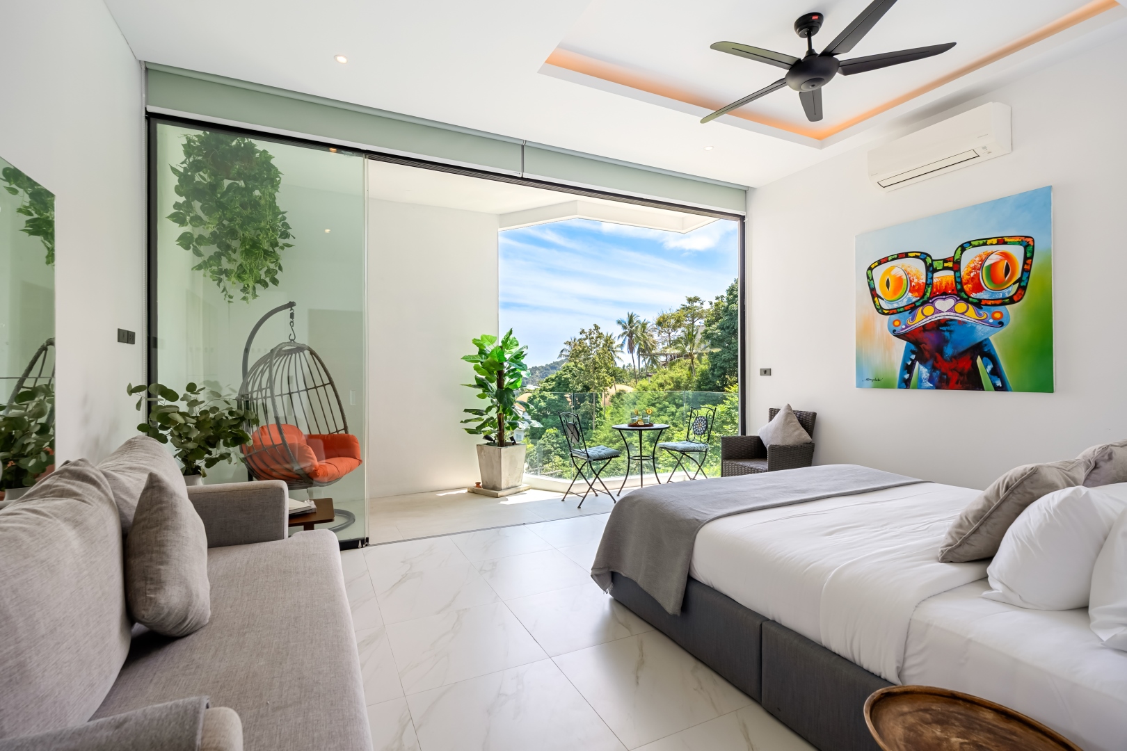 Das Villa Apartment befindet sich unterhalb der Villa und bietet mit einem Masterschlafzimmer mit Boxspringbett und einem weiteren Raum, ausgestattet mit Küche/Wohnzimmer und ausziehbarer Schlafcouch Platz für vier weitere Personen. Perfekt für mehr Gäste in der Villa und falls etwas mehr Privatsphäre unter euch gewünscht wird.