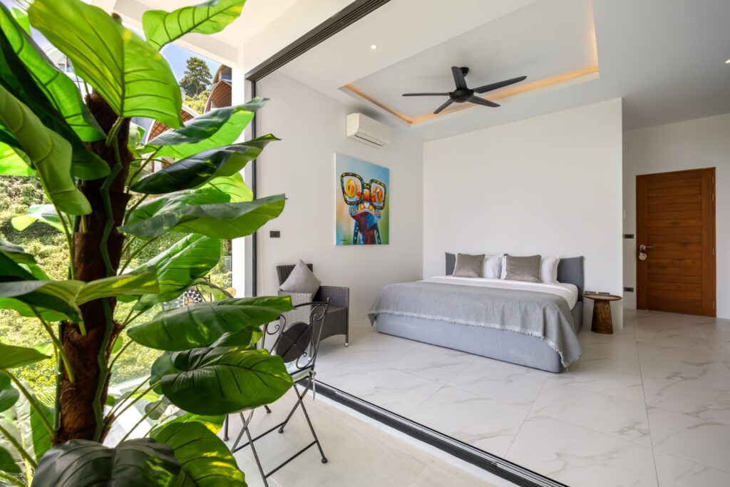 Das liebevoll eingerichtete Villa Apartment befindet sich unterhalb der Villa und bietet mit einem Masterschlafzimmer mit Boxspringbett und einer weiteren, ausgestatteten Küche mit Wohnzimmer, Flat-TV und Ausziehcouch Platz für vier weitere Personen. Perfekt für mehr Gäste in der Villa oder falls etwas mehr Privatsphäre unter euch gewünscht wird. Für den Ausblick sorgt ein zusätzlicher Balkon, der nur über das Apartment zugänglich ist. Zusammen mit dem Apartment besteht die Villa aus 3 Schlafzimmern für jeweils 2 Personen. Mit der großen Ausziehcouch im zweiten Wohnzimmer haben also insgesamt bis zu 8 Menschen einen Schlafplatz in der Villa.